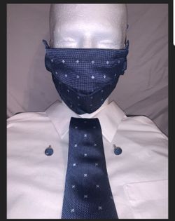 Skinny Necktie And Matching Face Covering And Cuff Links Set Navy Blue With Cross Pattern$33San Fernando, CA