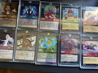 Disney Lorcana Disney100 Card Lot – Elsa, Genie, Stitch, Maui + Textured Yzma$250Chula Vista, CA