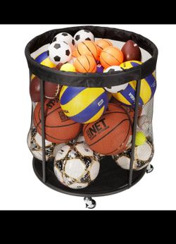 48 GALS LARGE BALL STORAGE ORGANIZER: Measured at H 24.4 in x @23.6 in, the sports ball storage cart can holds basketballs, footballs, soccer balls, v$25Alhambra, CA