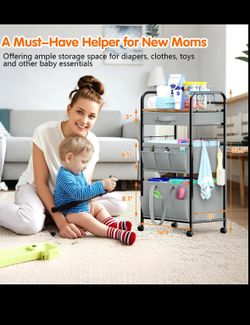Baby Diaper Caddy Organizer Cart - 3 Tier Metal Rolling Utility Cart with Drawer & Removable Basket & Wheels - Bedside Diaper Cart for Baby Supplies S$29Alhambra, CA