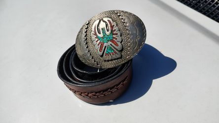 Beautiful Vintage Navajo Water Bird Belt Buckle In Solid Silver By Singer Family On Vintage Levi's Leather Belt$135Escondido, CA