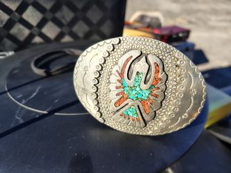 Vintage Juan Singer JS NAVAJO Thunderbird Peyote Bird Waterbird Belt Buckle in Silver$395Escondido, CA