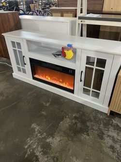 Tv stand with fireplace. Blows heat and can change colors in the fireplace. 63.5" w x 18" d x 33" h. Brand new $200 Warehouse Clearance Sale 🔥F$200Irmo, SC