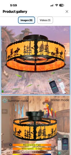 20" Farmhouse Caged Flush Mount Ceiling Fans with Lights and Remote Control Rustic Western Cowboy Silhouettes LED Black Chandelier Fan 6 Speeds for Be$100Arlington, TX
