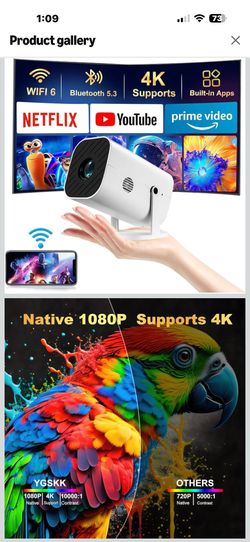 【Built-in APPS & Electric Focusing & 210° Rotation】Mini Projector With Wifi And Bluetooth, 1080P Portable Projector, Movie Projector for Bedroom, Supp$60Arlington, TX