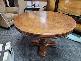 HEAVY Round Solid Oak Table 3 Chairs, 2 Leafs (45 Inch Diameter)$35Tacoma, WA