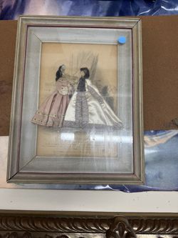 Antique 19th-Century French Fashion Plate w/ Fabric $200Raritan, NJ