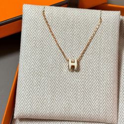 Logo letter decoration metal necklace women's pendant ice brown chain rose gold$280Dulles, VA
