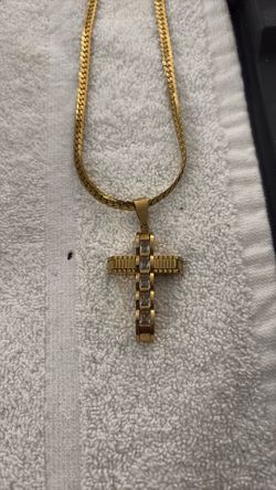 Cross With Moissanite Stones And Gold Chain $75South Holland, IL