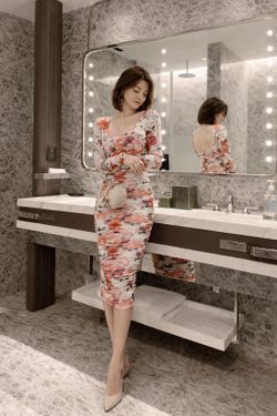 ✨Elegant Floral Ruched Bodycon Midi Dress – Romantic Slim Fit | Size M$25Alhambra, CA
