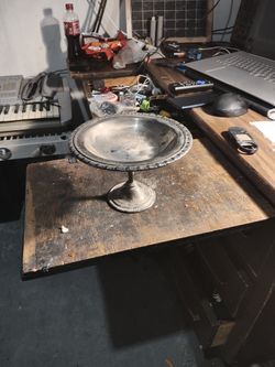 a vintage weighted sterling silver or silverplate compote, also known as a pedestal dish or candy dish. $40San Bernardino, CA