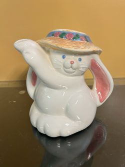 Ceramic Rabbit Pitcher, White Pink Blue Beige, Easter Animal Novelty $40Oceanside, NY
