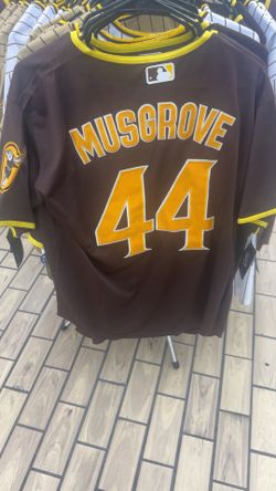 Size Small, Medium, Large, and XL. Nike San Diego Padres Musgrove #44 Brown Yellow MLB Baseball Jersey$40El Cajon, CA