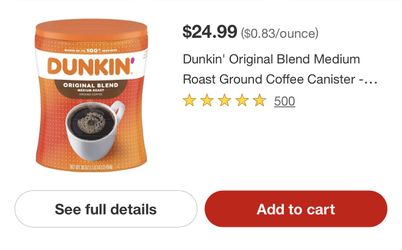 Dunkin' Original Blend Medium Roast Ground Coffee Canister - 30oz$10Glendale, CA