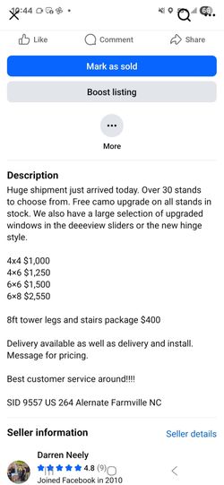 Rutt Hutt Dear Stands $1,000Clayton, NC