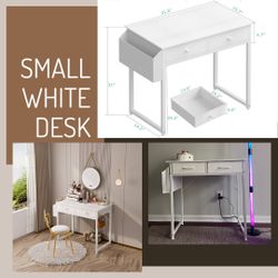 White laptop desk, Study Desk, 2 Drawer, Side Pocket Headphone Hook White $45Franklin Center, PA