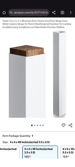 Thyle 1 Pcs 4 x 4 x 48 Inches Post Sleeve Vinyl Post Wrap Cover White Column Wraps for Porch Weatherproof Outdoor for Lasting Durability Easy Installa$20San Antonio, TX