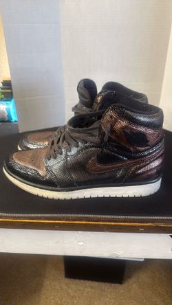Women's Nike Air Jordan 1 Retro High OG "Fearless" sneaker in a black and metallic rose gold colorway. $50Moreno Valley, CA