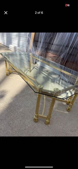 Vintage MCM Glass Top Coffee Table – Brass & Twisted Metal Accents$650Exeter, CA