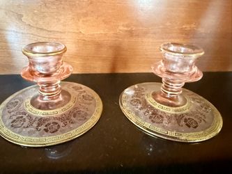 Antique Blush, Pink Gilt, Press Glass Candlestick$120Poway, CA