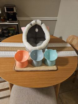 Cat Bed And 3 Elevated Bowls Cat Food And 1 Cat Scratcher$45Lake Worth, FL