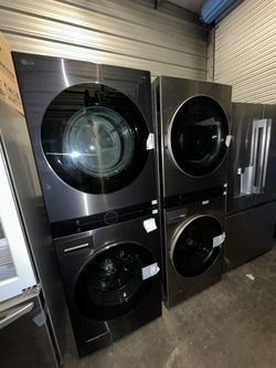 New LG WashTower™️ 4.5 cu. ft. Washer and 7.4 cu. ft. Electric Dryer - Black Steel stackable brand LG$1,300Orlando, FL