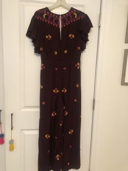 Free People Jumpsuit Cleo Embroidered Wide Leg Wine Boho Size 10$40Bensenville, IL