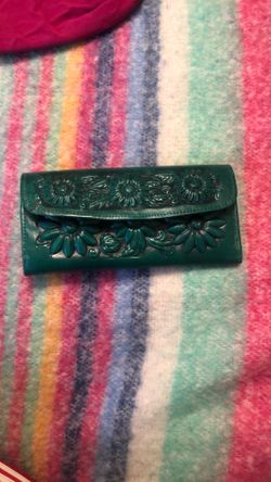 Alejandro Yeo hand-tooled leather clutch wallet with a floral design in a teal or dark green color$45Bensenville, IL
