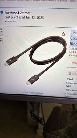 Lenovo Thunderbolt 4 Cable Passive 0.7 m Black$24Hawkinsville, GA