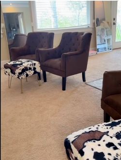 2Brown Chairs 1Cow Print Foot Stools$230Gainesville, GA