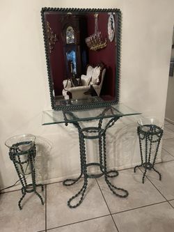 the whole set is made of iron One Of The glass in base is broken as you can see in the photo the whole set 120$120Gilbert, AZ