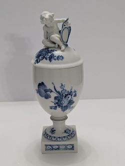 1958 Royal Copenhagen Blue Flowers Covered Urn Cherub Putti Finial Vase $200Fort Worth, TX