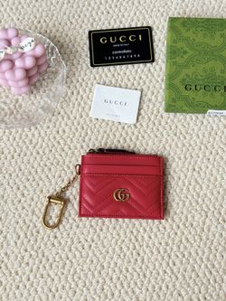 Gucci Gold GG Logo Leather Card Holder Red$190Chicago, IL