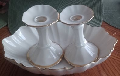 Lenox Oval Bowl with 2 Candle Stick Holders 24k Gold Trim 11”x 7.25”$80Bristol, TN