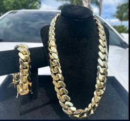 20mm | 22mm Miami Cuban Link 18 & 14k Gold Plated Chain & Bracelet Necklace $300Pompano Beach, FL