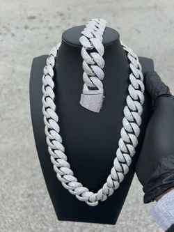 22mm White Gold Silver Iced Out Stimulated Diamonds Vvs Set Chain & Bracelet$350Pompano Beach, FL
