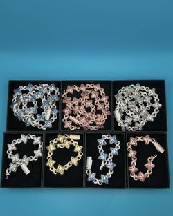 Flower 4 Leaf Clover Iced Out Premium Quality Chains & Bracelet Rose Gold Gold | Pink | Silver| Blue$150Pompano Beach, FL