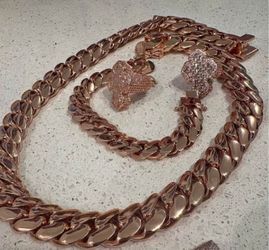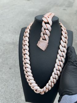 20mm Miami Cuban Link Rose Gold Plated Chain & Bracelet Set$350Pompano Beach, FL