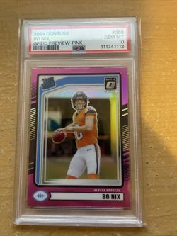 2024 Panini Donruss Rated Rookie Bo Nix#369 Optic Preview Pink Prizm (RC) PSA 10$120Hudson, WI