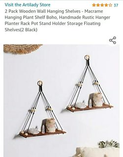 New In Box 2 Pack Wooden Wall Hanging Shelves Macrame Hanging Plant Shelves Boho$10Stockton, CA