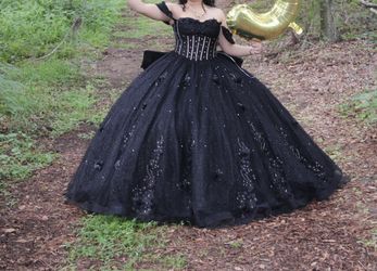 Custom Black Quince Dress with Bow & VeMee Full 6 Hoop Skirt Floor Length Crinoline Underskirt Wedding Dress Petticoat$550Wimauma, FL