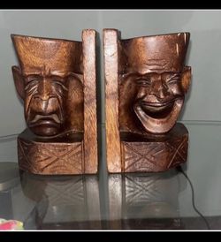 HAND CARVED VINTAGE COMEDY AND TRAGEDY MASK WOODEN BOOKENDS MID CENTURY$50Artesia, CA