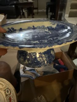 “Blue transferware style pedestal compote, Italian scene, vintage decorative serving dish”$30Anaheim, CA
