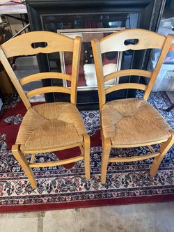 Pair of Solid Wood Ladder-Back Chairs – Woven Rush Seats$50Anaheim, CA