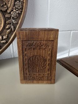 Handcrafted Wood Box From India, Used, Seems It Was Used As A Tea Bag Storage Box, Seals Shut Very Tight$20San Antonio, TX