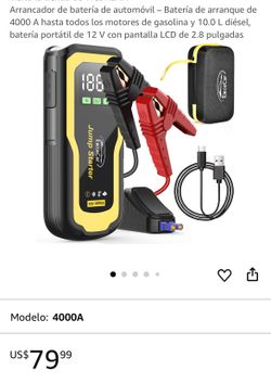 Arrancador de batería de automóvil – Batería de arranque de 4000 A hasta todos los motores de gasolina y 10.0 L diésel, batería portátil de 12 V con p$30Carson, CA