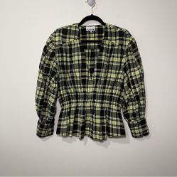 Ganni Women Black Yellow plaid puff sleeve checked seersucker preppy blouse$80Columbus, OH