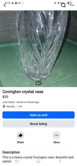 Covington Crystal Vase$20Greenwood, IN