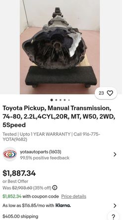 Toyota Pickup Manual Transmission Car Part$450Greenville, SC