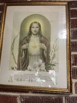 Vintage Picture Vtg. Sacred Heart Of Jesus Consecration Of The Family In Handmade Frame. Signed$30Baltimore, MD